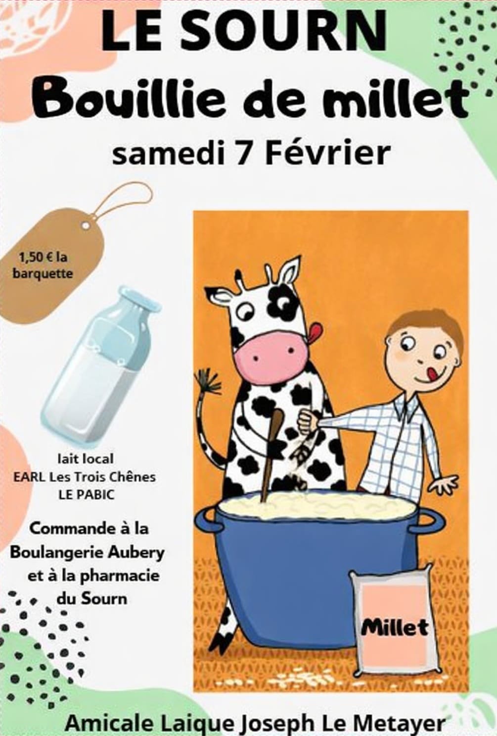 L’Amicale laïque vend ses bouillies de millet le samedi 7 février 2026 ; n’attendez plus pour réserver vos barquettes ! Les bons de commande sont à la boulangerie et à la Pharmacie. Pensez à réserver car la bouillie est souvent victime de son succès...