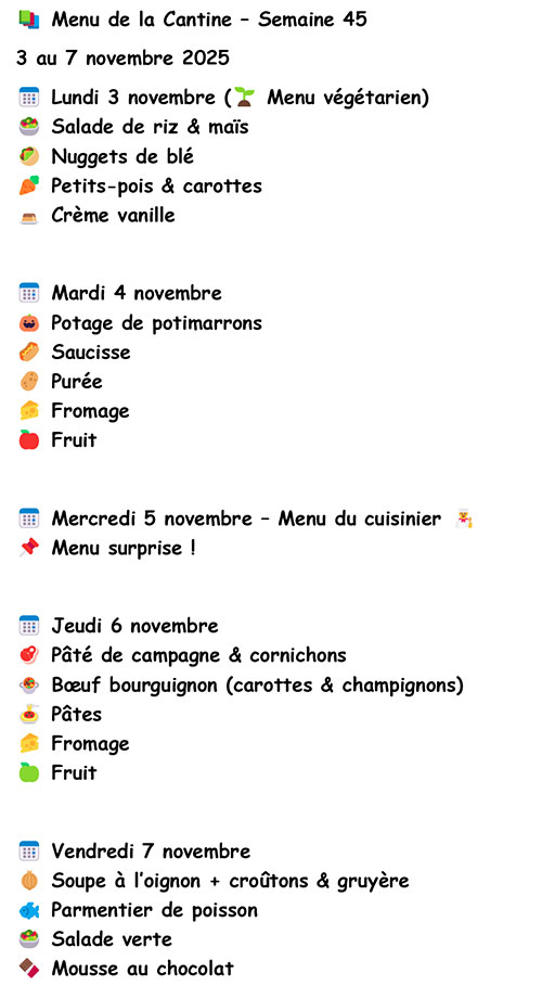 La commune a mis en place une commission nutrition pour élaborer avec Arnaud Le Cunff, (cuisinier) les menus en prenant en compte les nouvelles règles nutritionnelles obligatoires à appliquer dans la restauration collective.